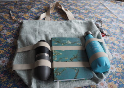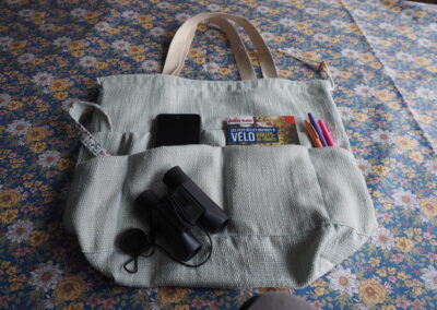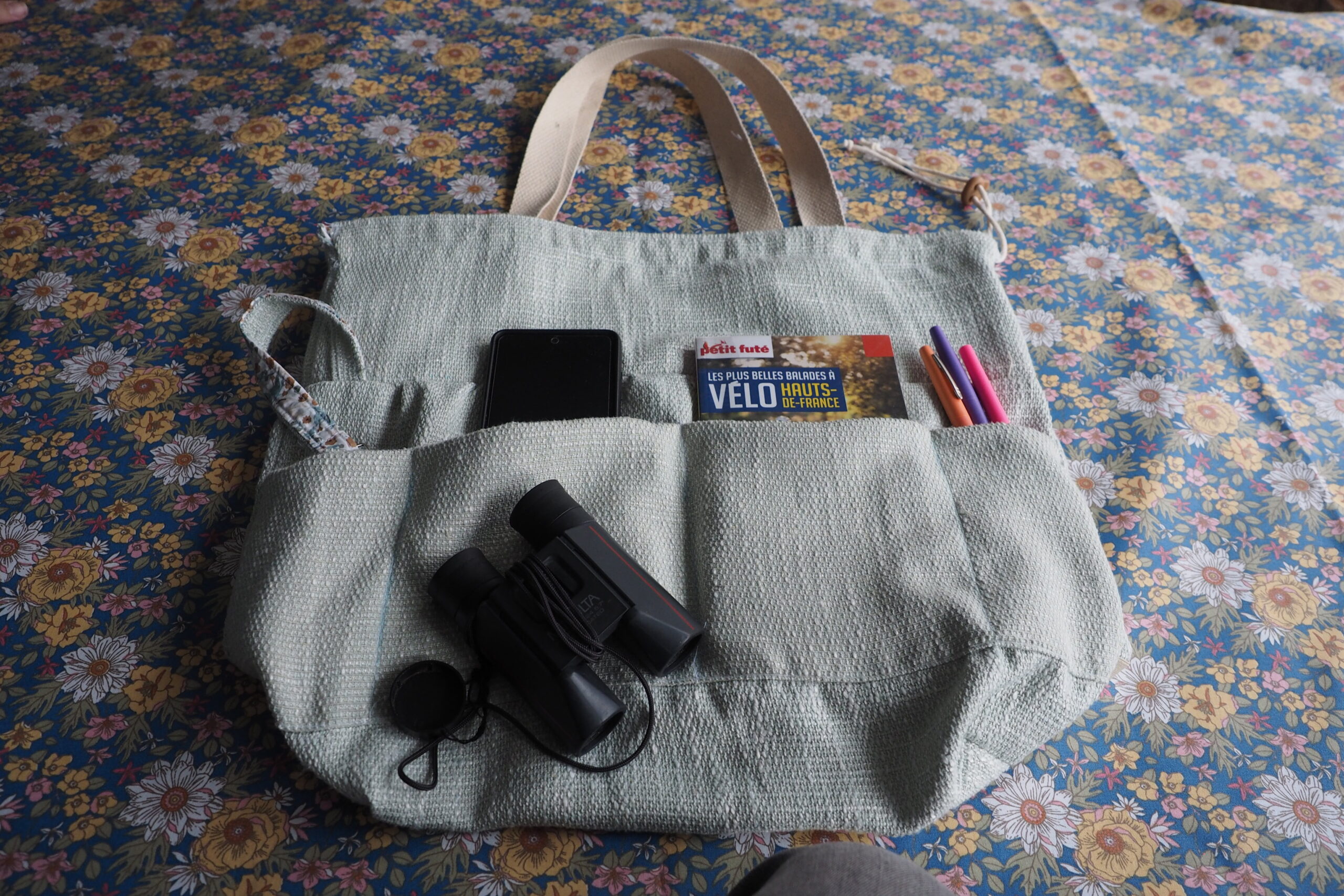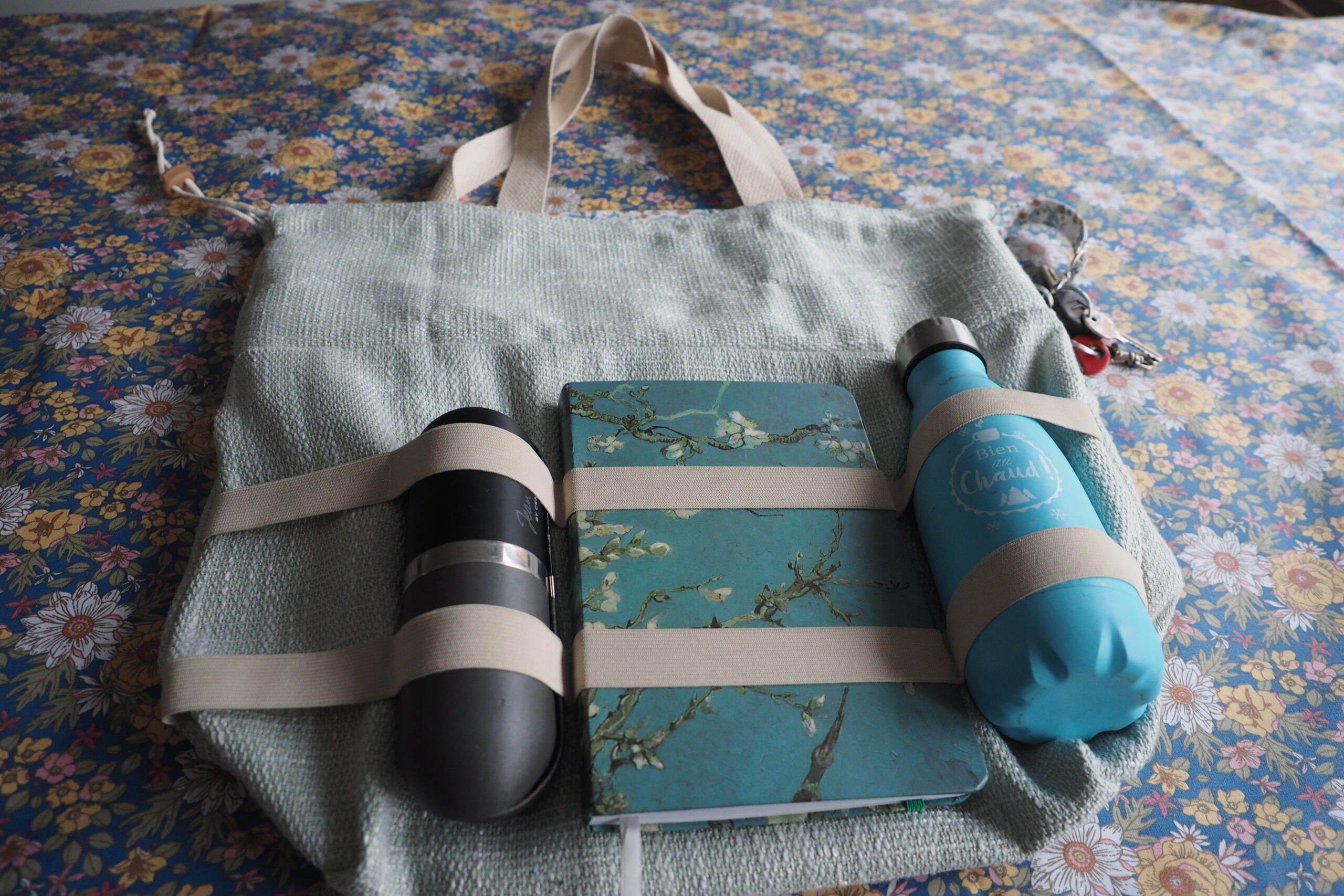 D’un coté 4 poches, de l’autre 2 elastiques qui créent 4 emplacement pour organiser notre bazar.